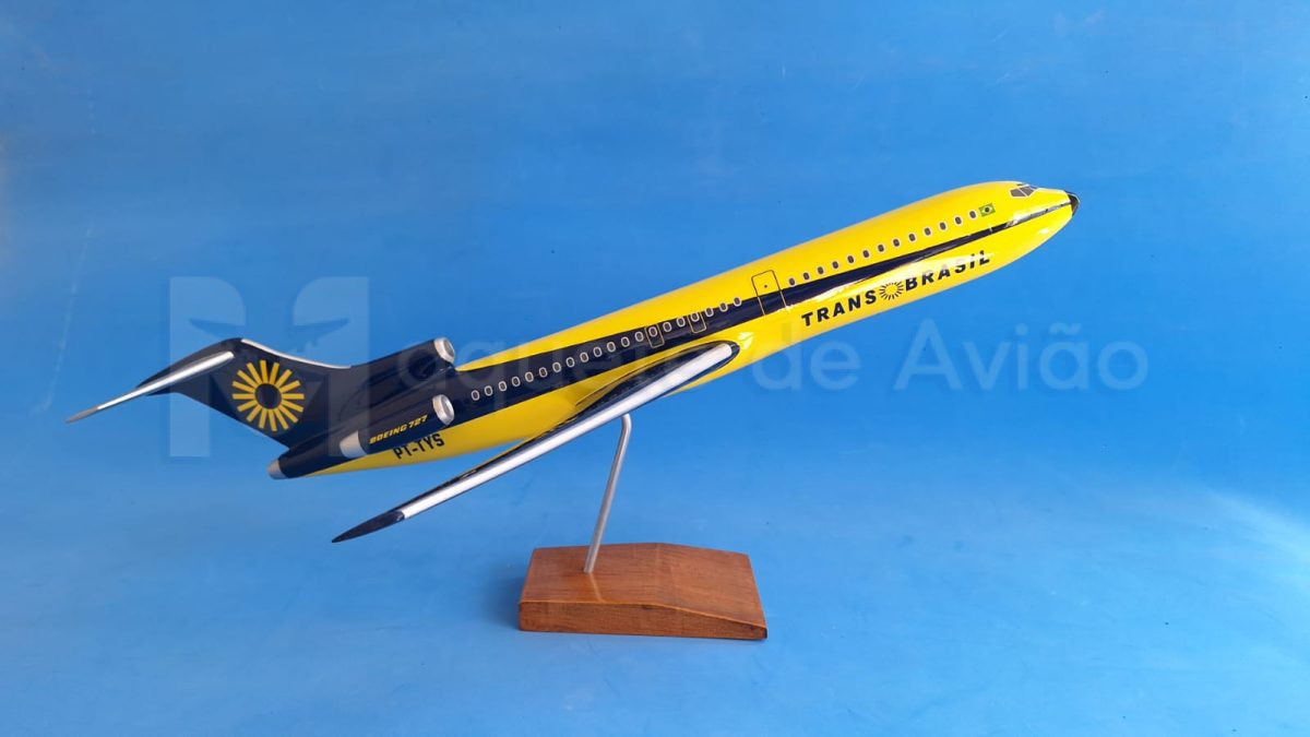 Maquete 727-100 Transbrasil 42 cm em fibra de vidro.