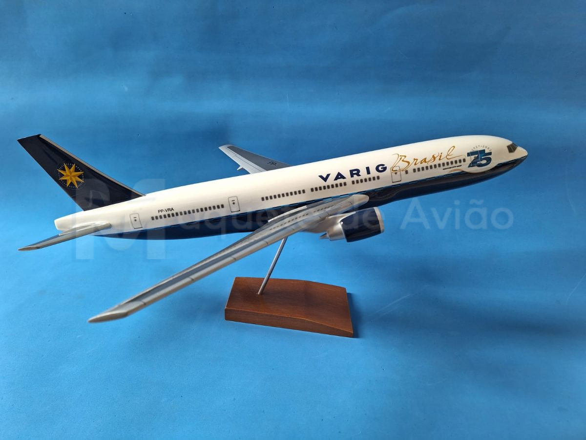 Maquete 777-200 Varig 75 anos 48 cm em fibra de vidro.